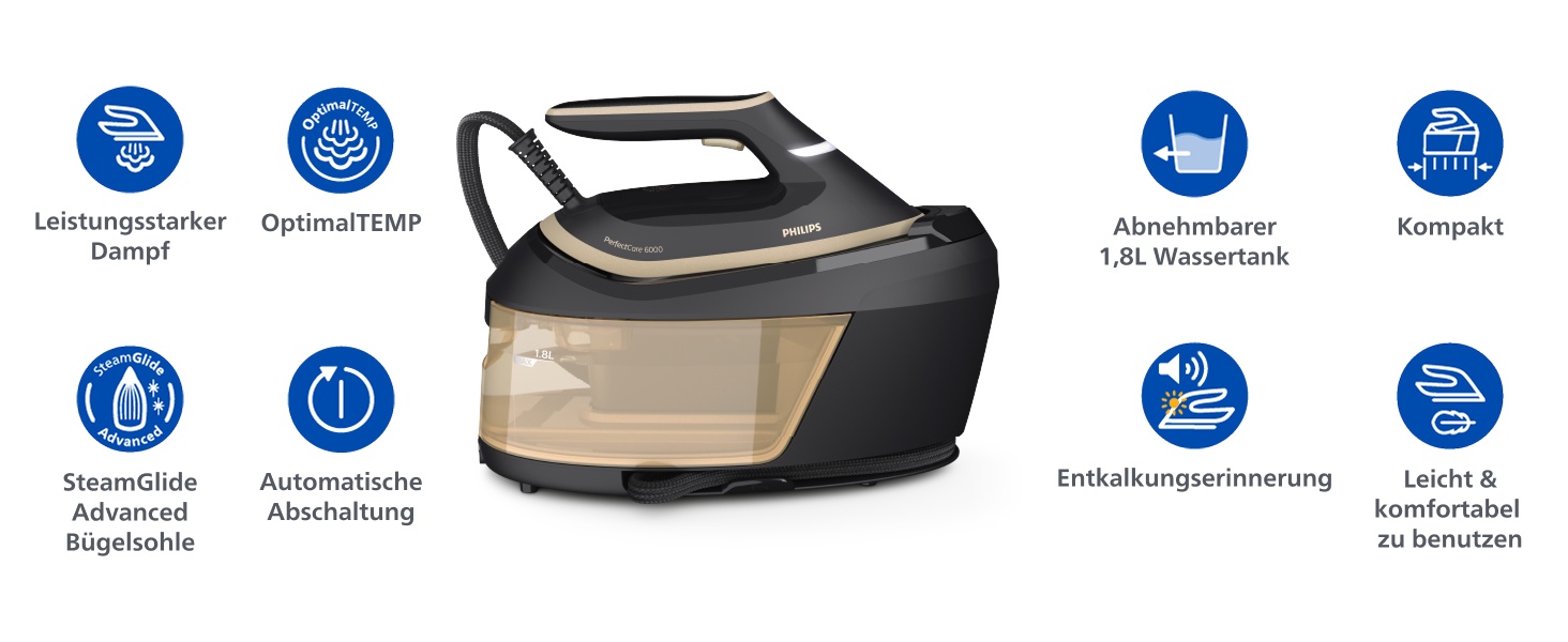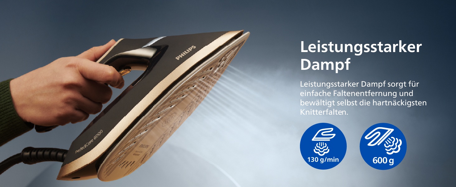 - Remove stubborn creases easily: The constant steam output of 130 g/min does the hard work for you – with an additional steam boost of 600 g, the creases just melt away.