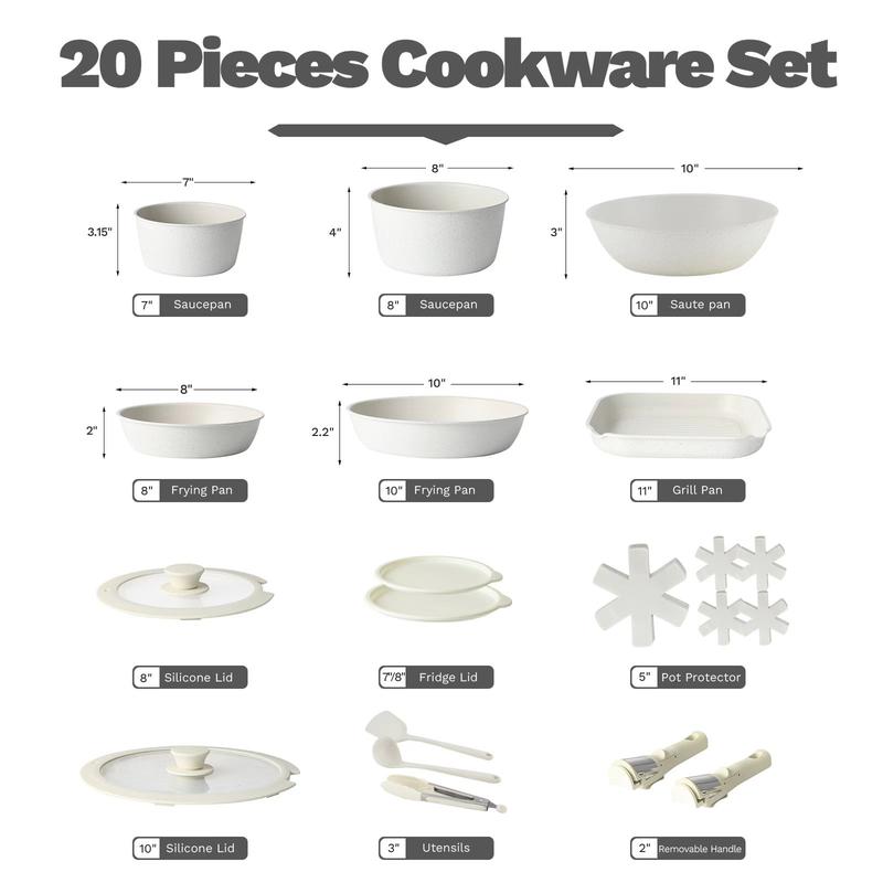 • 【Top Seller】USELUCK 20 Pcs Detachable Handle Non-Stick Cookware Set with Stackable Pots and Pans, Oven Safe, Healthy RV Set with Frying Induction Lids Kitchenware
